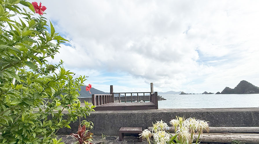 加計呂麻島で2番目に大きい集落でありながら、とても静かな西阿室。その西阿室集落の一番奥、海に面した所にvillaとうとがなしはあります。一棟貸し切りのお宿です。