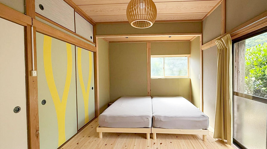 お部屋は、1ベッドルーム階 (シングルベッド 2台階 )、 6階畳と8階畳の和室には布団をご用意。広々とした和室は小さなお子さま連れやグループ旅行にもぴったり。各寝室は仕切りでプライベートも確保できます。